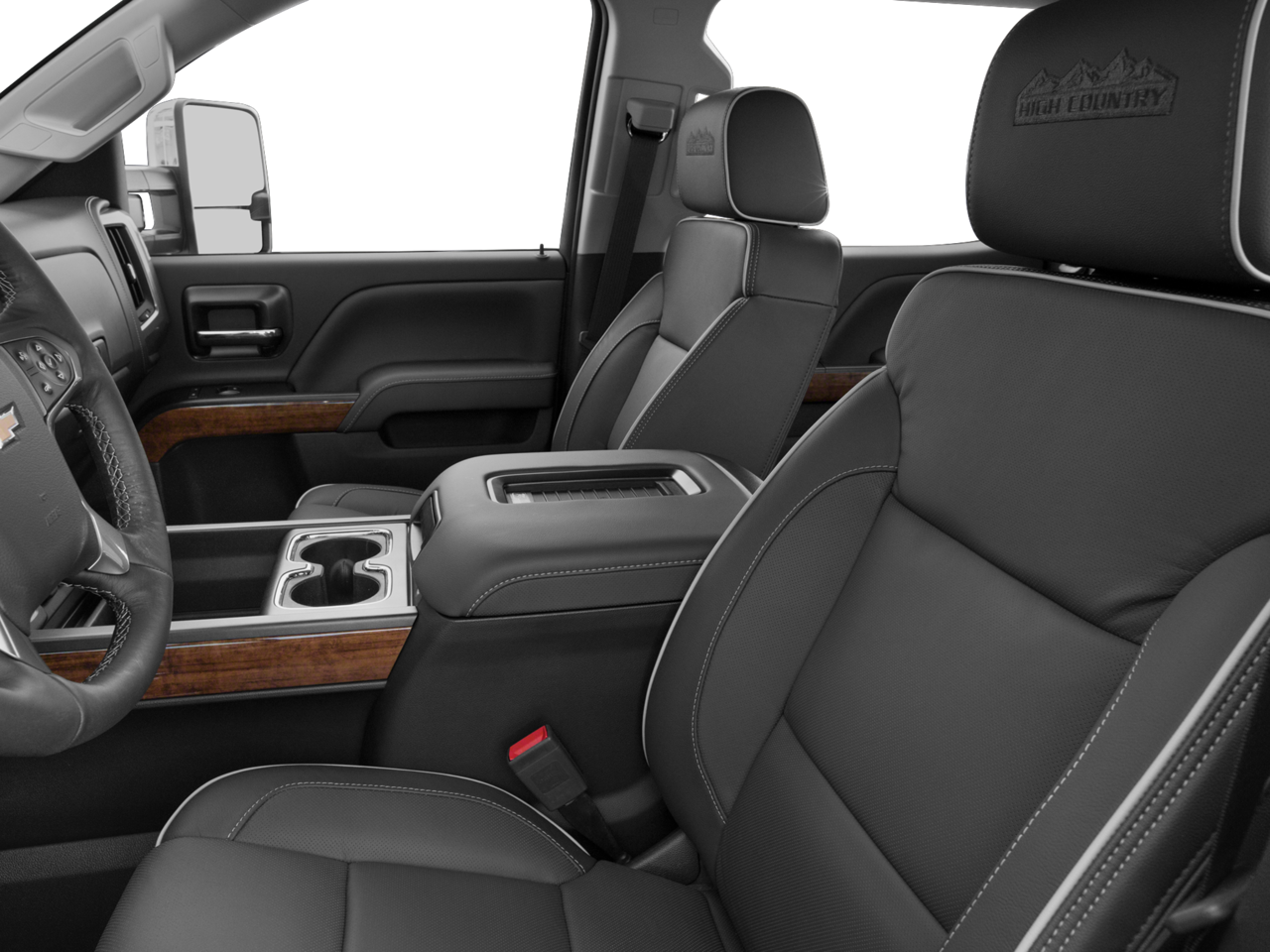 - High Country includes High Country brushed metal sill plate, (AN3) front full-feature leather-appointed bucket seats, (KQV) heated and vented seats, (B58) color-keyed carpeted floor mats, (D07) center floor console, (UQA) Bose sound system, (PYV) 18"chromed aluminum wheels on SRW and (RS7) 17" forged polished aluminum wheels on DRW, (QWF) LT265/70R18E all-season, blackwall tires on SRW and (QQO) LT235/80R17E all-season highway tires on DRW, (UD5) Front and Rear Park Assist, (VB5) body-color front bumper, (VT5) body-color rear bumper, Black mesh grille with 2 chrome inserts, (V76) Black recovery hooks, (CTD) cargo tie downs, dealer-installed (4), (Y65) Driver Alert Package (which includes (UFL) Lane Departure Warning, (UEU) Forward Collision Alert, safety alert seat), (UVD) heated steering wheel and (JF4) Power Adjustable Pedals