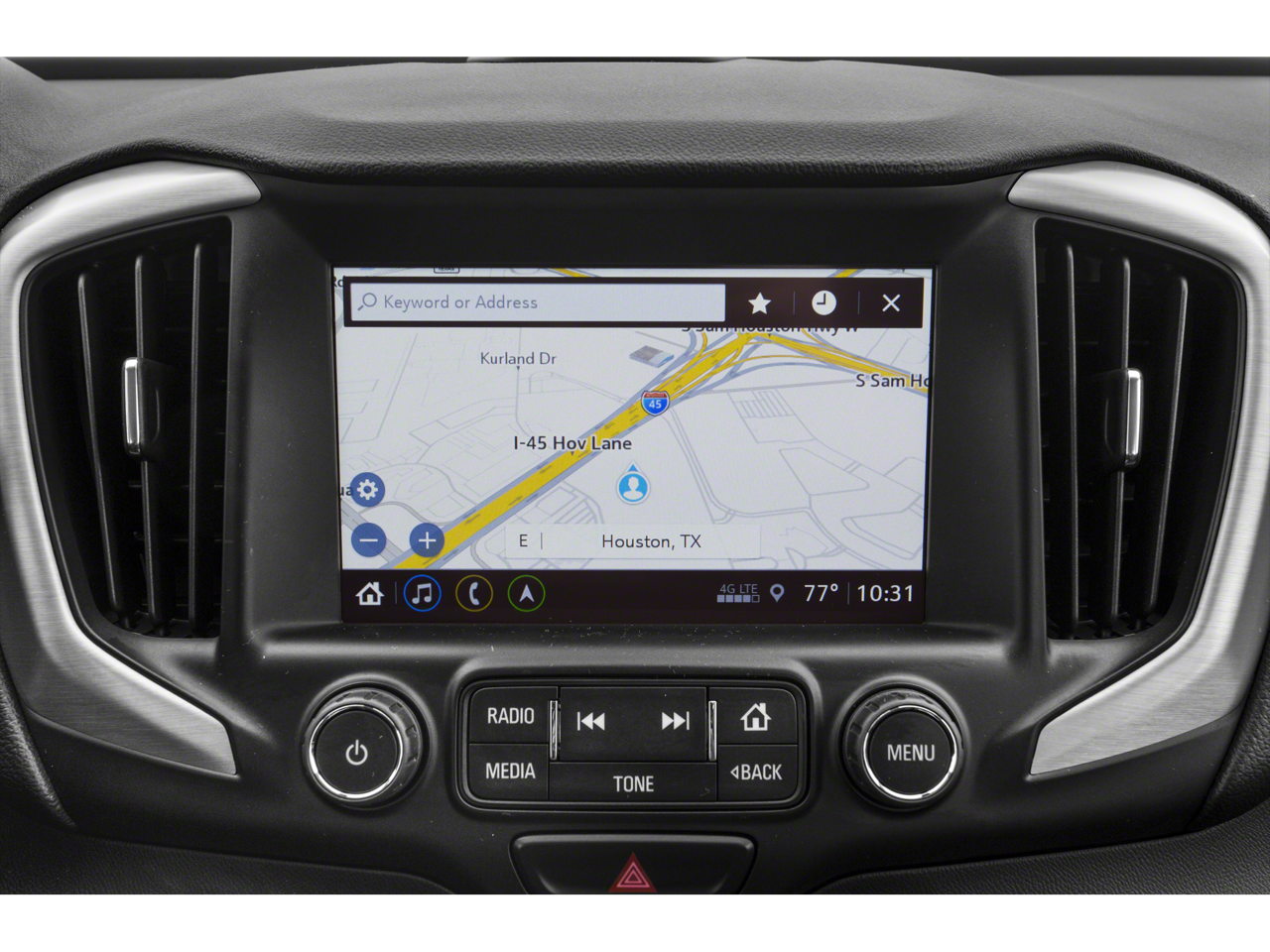 - Audio system, 8" diagonal GMC Infotainment System with Navigation includes multi-touch display, AM/FM/SiriusXM stereo, Bluetooth® streaming audio for music and most phones, Android Auto and Apple CarPlay capability for compatible phones, advanced voice recognition, in-vehicle apps, personalized profiles for infotainment and vehicle settings. Includes greater memory.