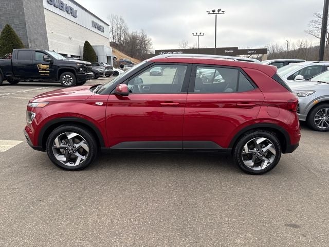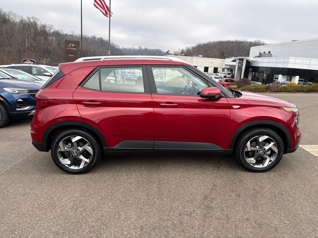CARFAX One-Owner. Clean CARFAX. 2025 Hyundai Certified. FWD Venue SEL Ultimate Red CVT *** COMES WITH OPTIONS LIKE Option Group 01, 4-Wheel Disc Brakes, 6 Speakers, 6.5J x 17 Alloy Wheels, ABS brakes, Air Conditioning, Alloy wheels, AM/FM radio, Apple CarPlay & Android Auto, Auto High-beam Headlights, Automatic temperature control, Brake assist, Bumpers: body-color, Cloth Seat Trim, Delay-off headlights, Driver door bin, Driver vanity mirror, Dual front impact airbags, Dual front side impact airbags, Electronic Stability Control, Front anti-roll bar, Front Bucket Seats, Front Center Armrest, Front reading lights, Front wheel independent suspension, Fully automatic headlights, Illuminated entry, Leather Shift Knob, Leather steering wheel, Low tire pressure warning, Occupant sensing airbag, Outside temperature display, Overhead airbag, Overhead console, Panic alarm, Passenger door bin, Passenger vanity mirror, Power door mirrors, Power moonroof, Power steering, Power windows, Radio: AM/FM/HD Display Audio, Rear window defroster, Rear window wiper, Remote keyless entry, Security system, Speed control, Speed-sensing steering, Split folding rear seat, Spoiler, Steering wheel mounted audio controls, Tachometer, Telescoping steering wheel, Tilt steering wheel, Traction control, Trip computer, and Variably intermittent wipers.